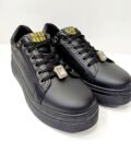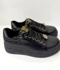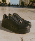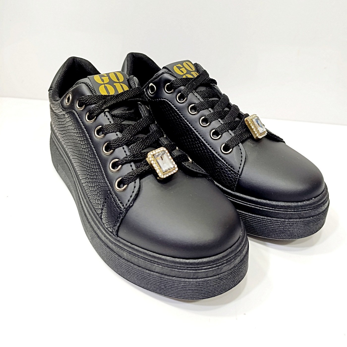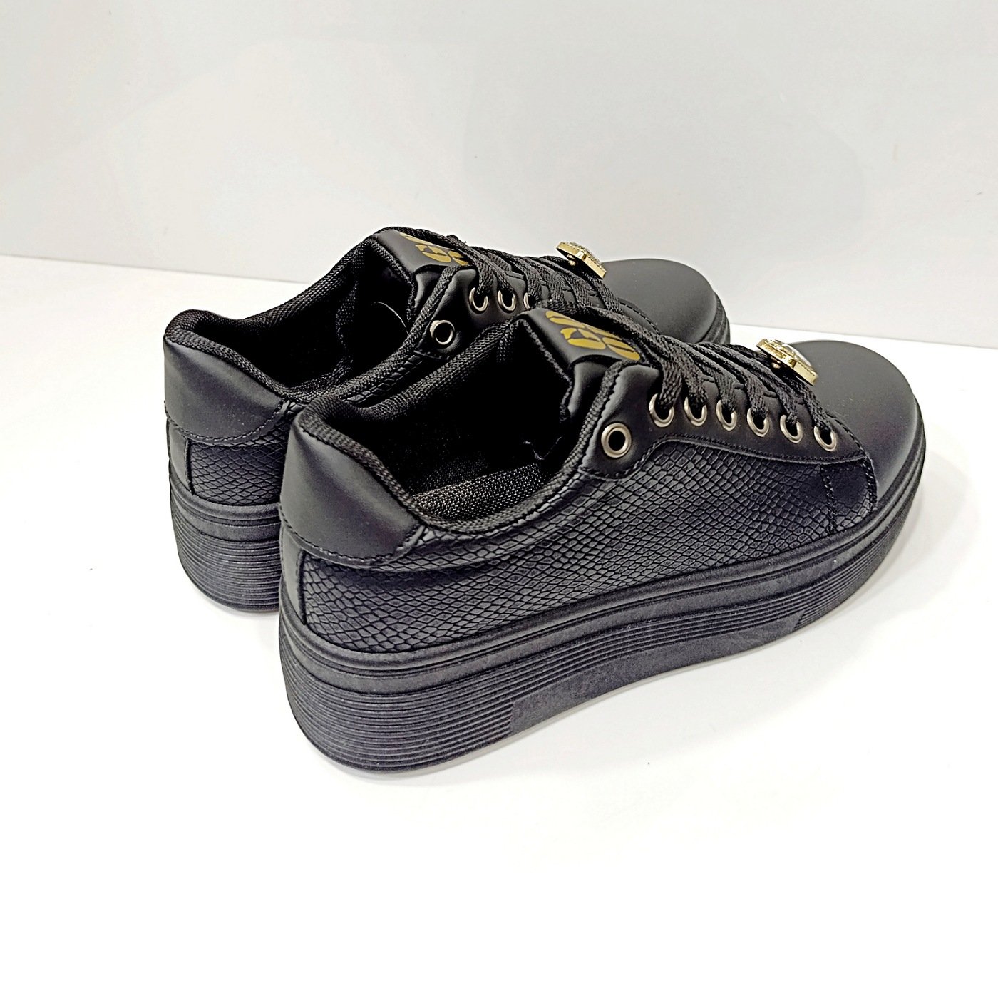 Γυναικεία σνίκερς σε μαύρο χρώμα με εσωτερικό αναπνέων ύφασμα.δετά για σταθερό κράτημα στο βάδισμα