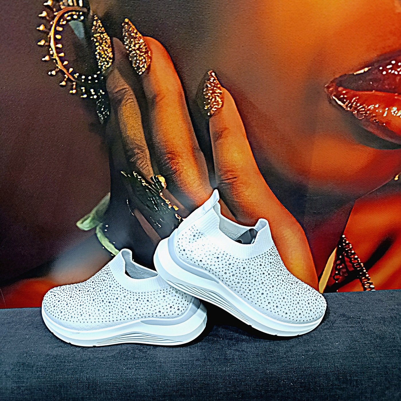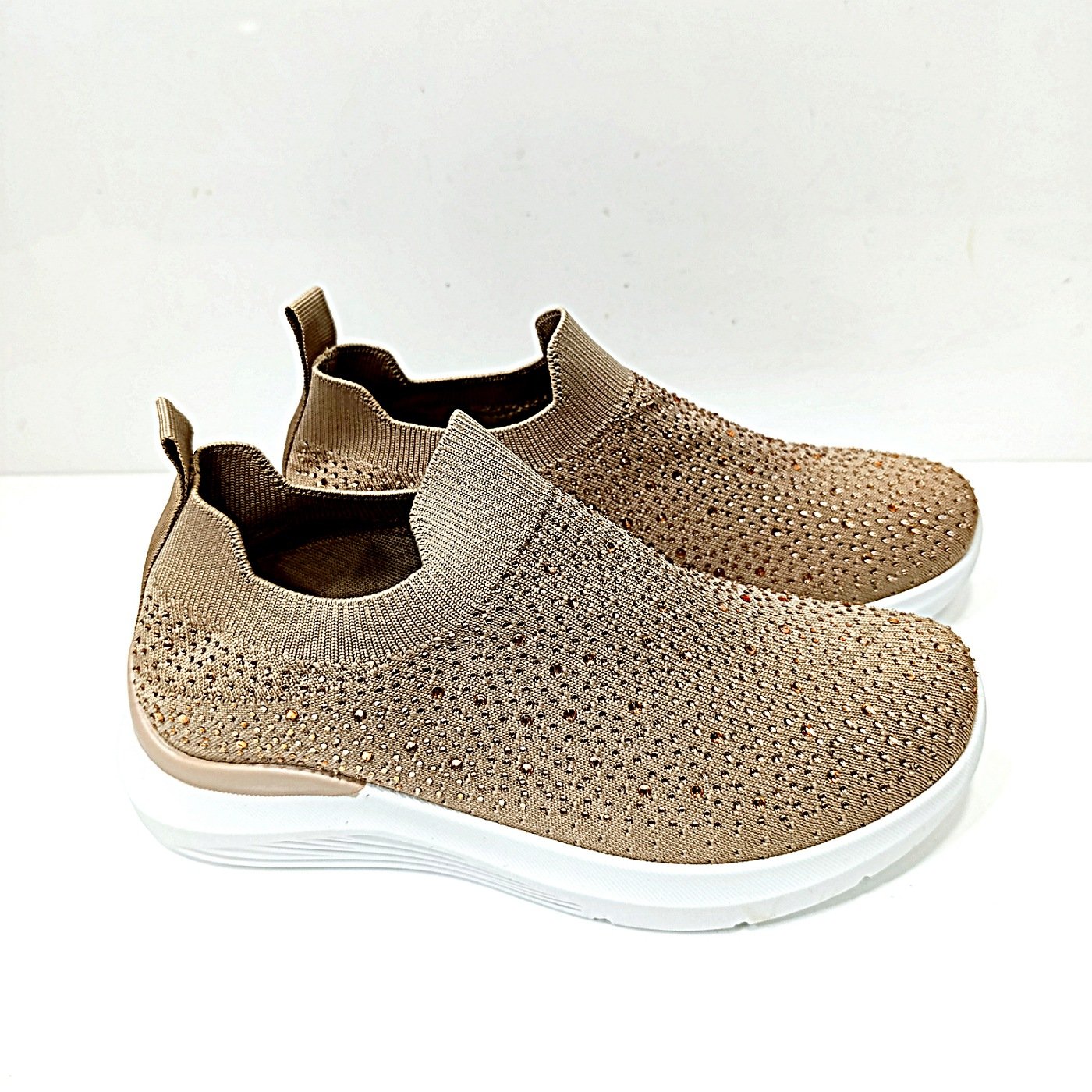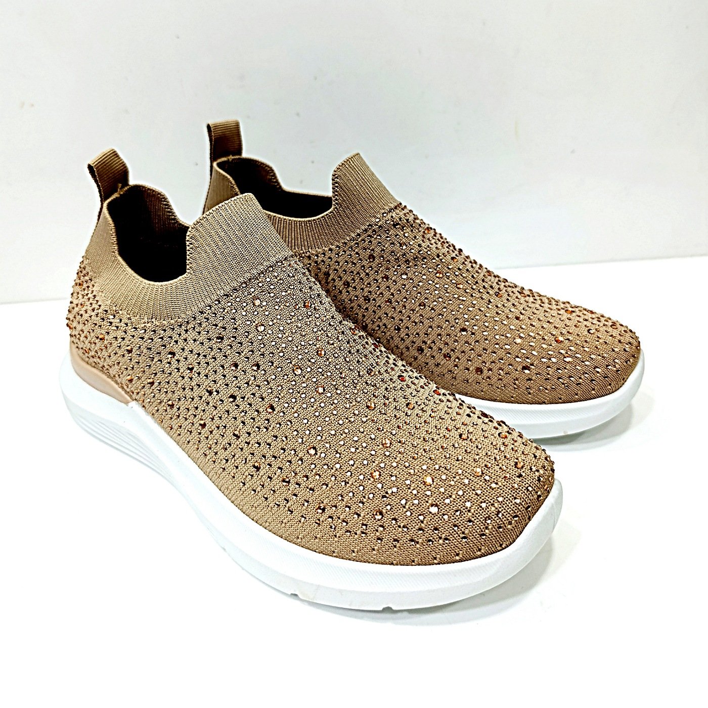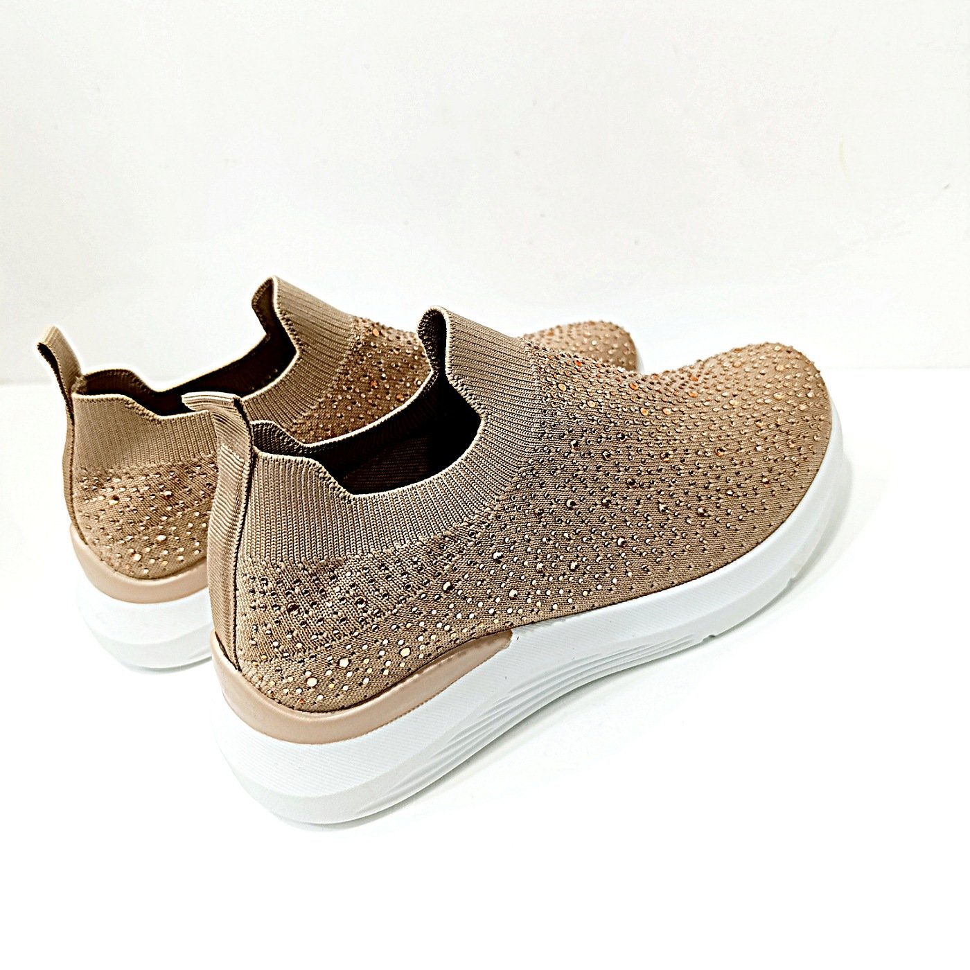 Sneakers μπέζ απόχρωση με λαμπερά στράς . Στυλάτα παπούτσια σχεδιασμένα με τις τελευταίες τάσεις της μόδας , που δημιουργούν στιλάτες εμφανίσεις που δεν περνούν απαρατήρητες.